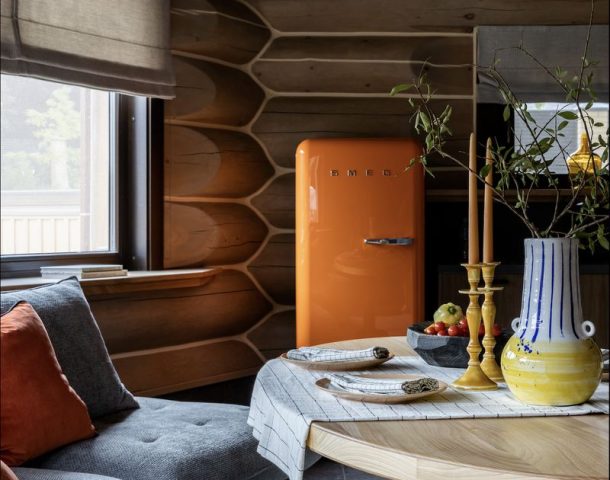 Это интересный архитектурный проект с необычным кровельным решением и цветовыми акцентами